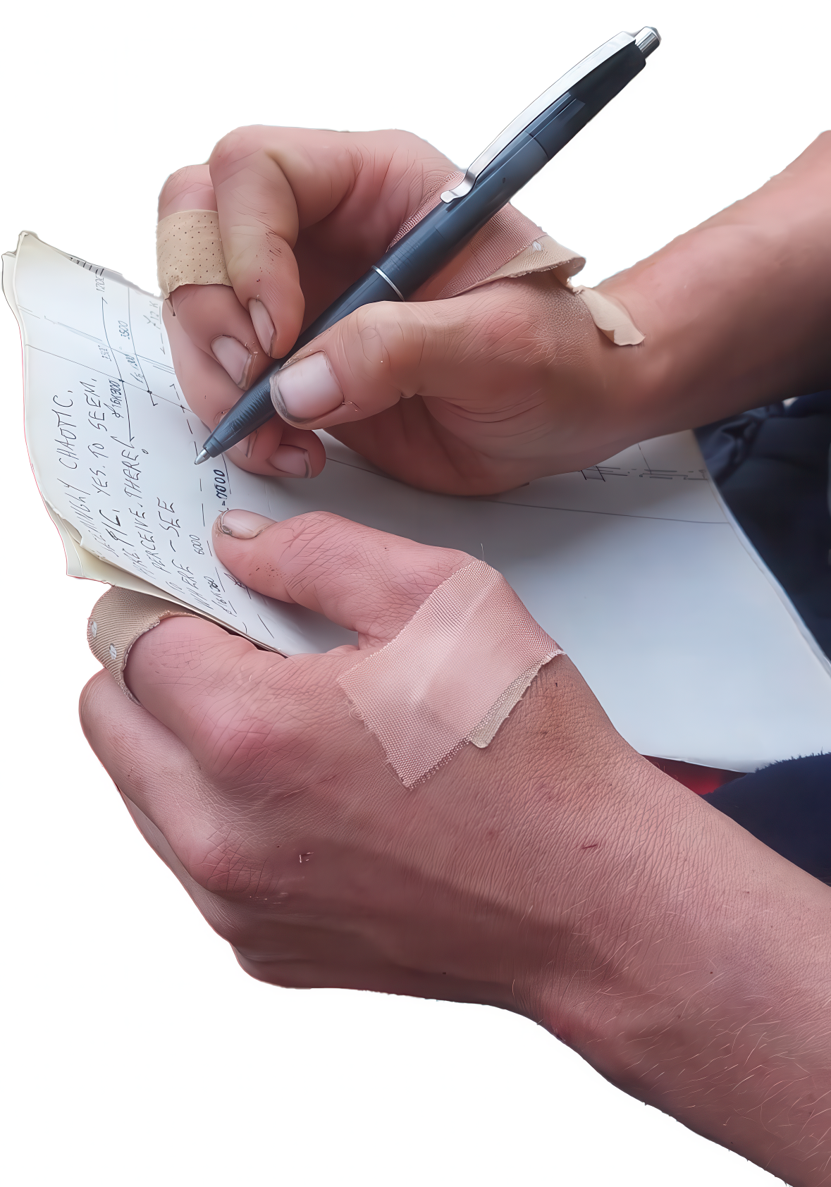 The performance(s?) executed at Gallery of Fine Art in Náchod on 27th of September 2024, comments on the politics and trends of the current Central European art scene(ry) with a strong stylistic reference to Samuel Beckett. The performance is written in the form of a seemingly existential play, reflecting on certain personal, yet universal experiences. The performance happens unannouncedly in the indoor spaces of GVUN during the day, therefore the sometimes seemingly thin line between a performance and the real seems blurred. The performer walks around the exhibition space seemingly lost, seemingly repeating some kind of a hand written script. However, repetition seems to be equal to (in)difference, at least (t)here. The play develops as the script is continuously revised: it as well reflects on the actions happening inside the white walls that are present. Parts of the script are left in the space while the artist works on an endless play. Can an artist be a person, or just a mere persona? Do his muddy working clothes (de)value the aura of art as they are not framed or merely even documented? Perhaps more importantly – is the perceiver also walking on such a tightrope – in line ~ on the same boat? Is there a boat? The answer is a mere yes – contemporaneity seems to not offer space for original (selves). It seemingly n̶e̶v̶e̶r̶ did, so – who is the real performer now? The selfish viewer – the one that is supposed to see, then? But since when, really?