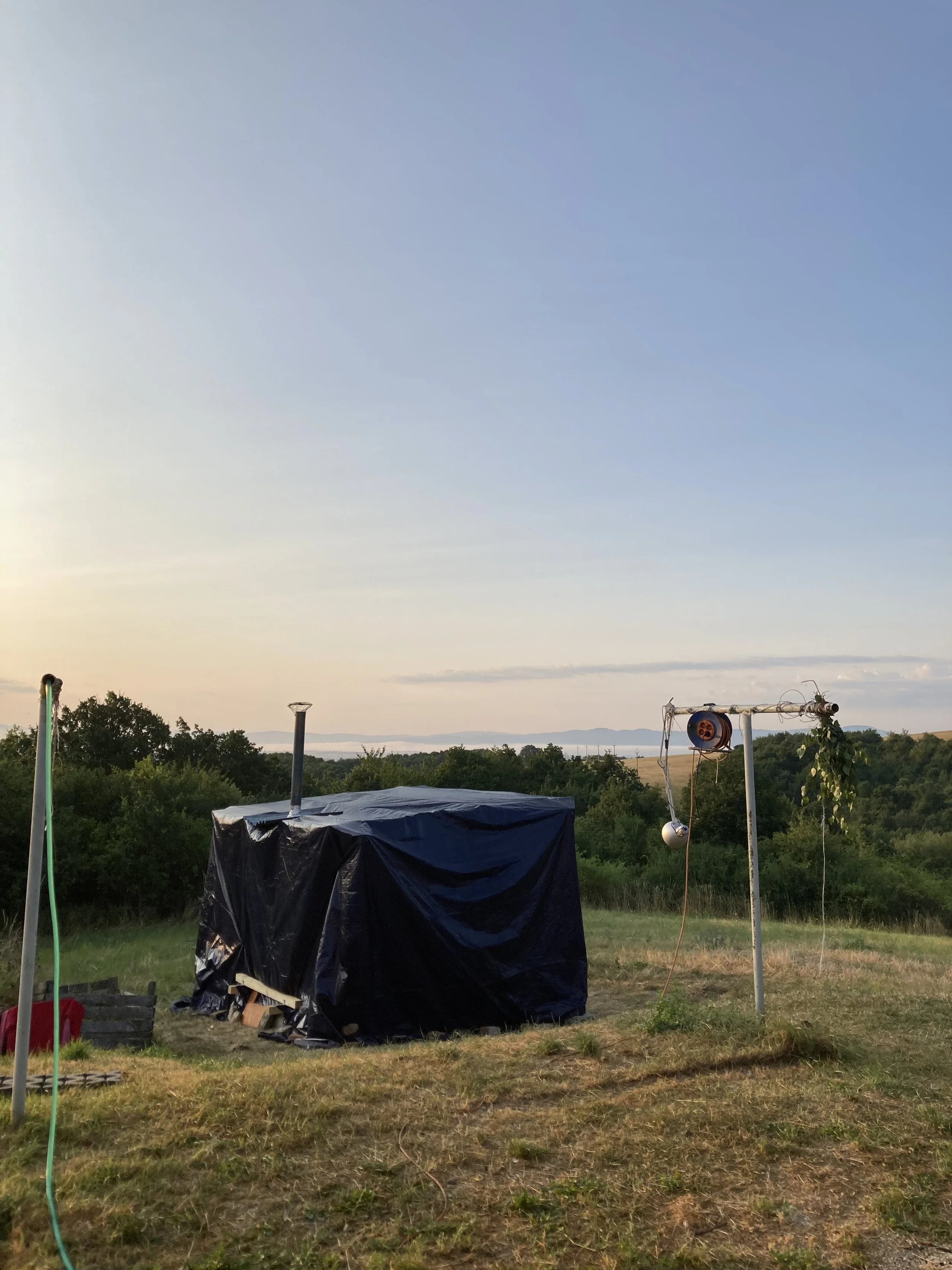 “Midsamr Simulátor challenges the structure of time in the fields of Slovakian countryside. Midsamr is a Slovak linguistic facilitation of midsummer, a yearly semi-pop-culturalized pagan festival primarily celebrated in northern Europe at the end of June. In Podhradie, the Simulátor aims to make such stiff conceptions of linearity unimportant and honors the present in-between the curtains of the steam of life. However, of course the pickles need to be prepared in time and according to the traditional recipe, just in case the poor Simulátor faces challenges as the winter comes.